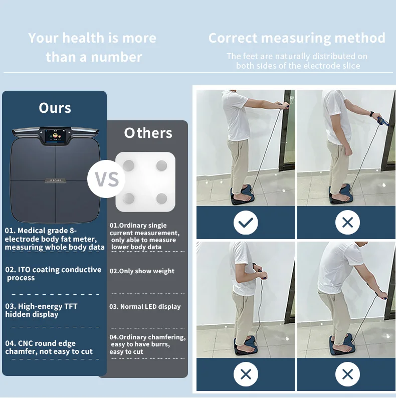 59 BODY COMPOSITION METRICS: This WiFi/Bluetooth enabled smart body weight scale utilizes 8 electrodes and dual frequency technology to provide highly accurate body composition analysis, including body weight, Hydration Levels, Body Fat & Lean Mass, Muscle Mass, Body Type, Heart Rate, Metabolic Rate (BMR), Protein Levels, Bone Density, BMI, Visceral, and 56 other metrics.