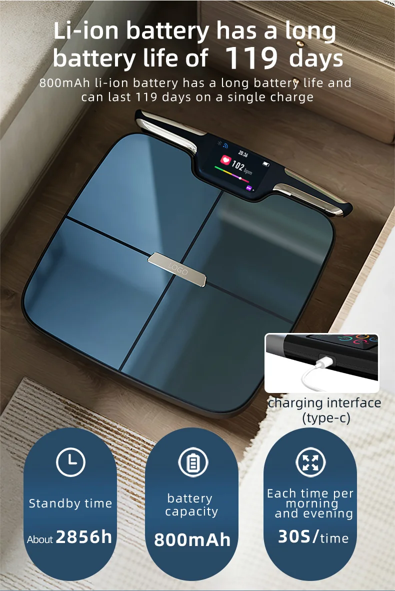 Battery-Free Convenience: With the built-in 800mAh lithium battery, providing up to 180 days of use on a single charge, say goodbye to constant battery changes.