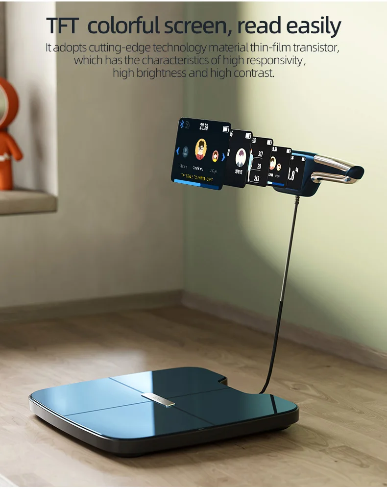 7 DATA READINGS ON DISPLAY: The scale handle is equipped with a bright TFT LCD in full color, making it easy to read the data. Immediately following the measurement, the 7 key body composition metrics will be shown, and the difference from the previous result can also be read on the display.